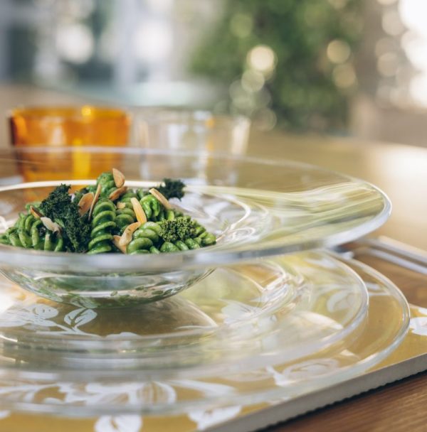Alzata in vetro trasparente HD – VIDIVI Vetri delle Venezie a 2 piani con asta in alluminio extra light 100% riciclabile Dimensioni Diametro 15 – 21 cm. Altezza 23 cm.